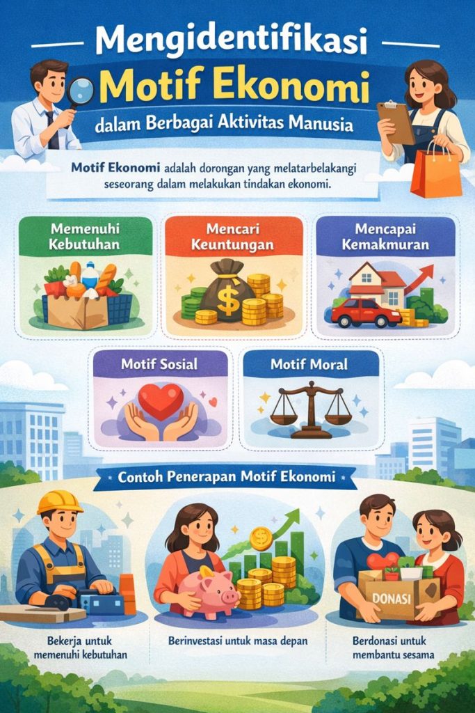 Dalam kehidupan sehari-hari, manusia selalu melakukan berbagai tindakan, mulai dari bekerja, berbelanja, menabung, hingga memilih cara menggunakan waktu luang. Di balik setiap tindakan tersebut, terdapat alasan atau dorongan tertentu yang memengaruhi keputusan seseorang. Dalam ilmu ekonomi, dorongan tersebut dikenal sebagai motif ekonomi. Memahami motif ekonomi penting agar kita dapat melihat perilaku manusia secara lebih rasional dan terstruktur, khususnya dalam konteks pemenuhan kebutuhan hidup yang terbatas.